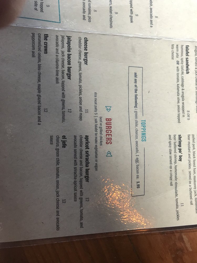 Cheddar, bacon, lettuce, tomato, avocado, apricot Sriracha sauce.